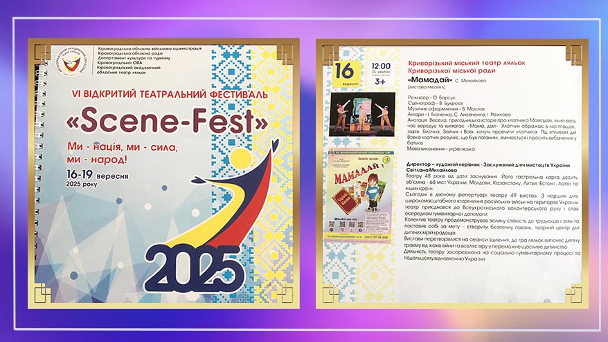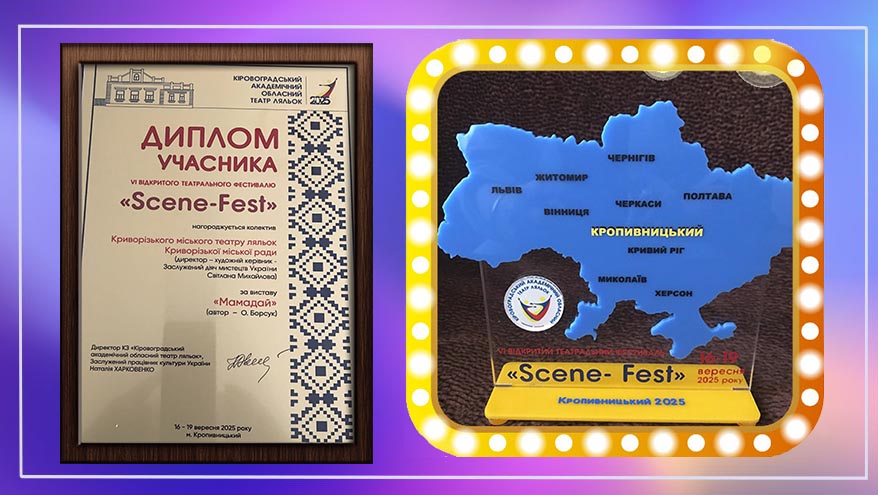 Приємні враження від участі у VI Відкритому театральному фестивалі «SCENE — FEST» (місто Кропивницький), на якому наш театр презентував виставу-мюзикл «Мамадай» режисера — постановника Олександра Борсука