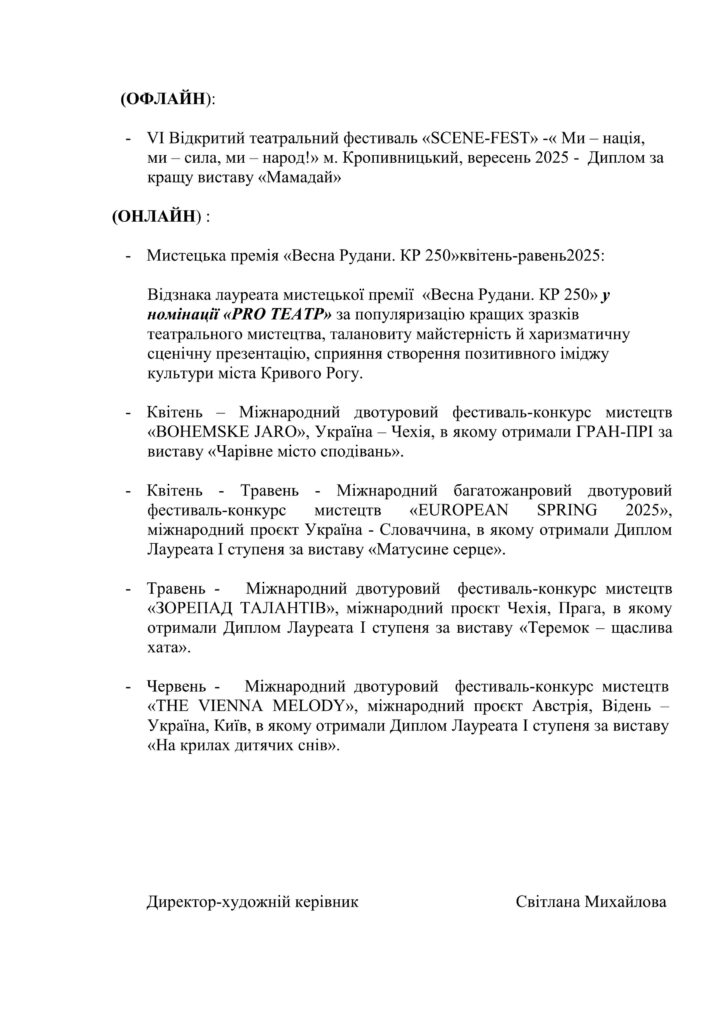 Михайлова (Відзнака за використання новітніх технологій у театральному